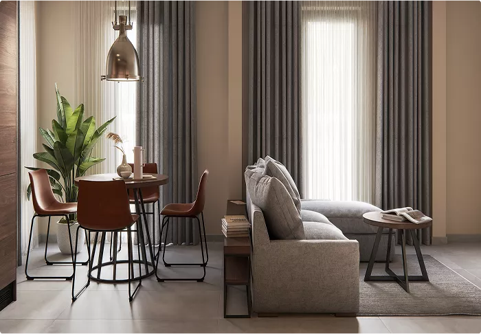 В конструкции модульных домов DoorHan EFFECT отсутствуют межкомнатные несущие стены. Владельцы могут сделать полную перепланировку пространства по собственному усмотрению.